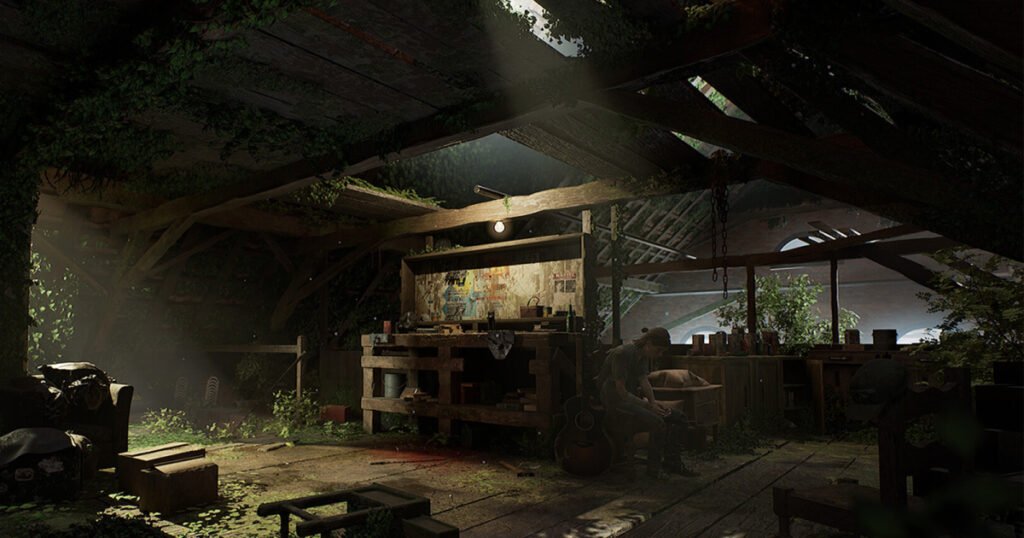 Lighting also builds narrative atmosphere. For example, The Last of Us (Image below) uses warm, golden light during moments of hope and harsh, desaturated tones in scenes of despair. Similarly, Journey relies on bright, radiant illumination to symbolize progress and spiritual awakening. Each shift in tone subtly reflects the story’s emotional rhythm.